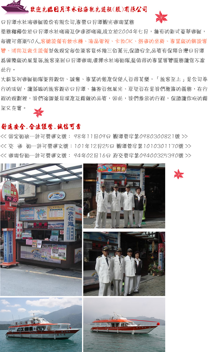 Copyright © 2018 日月潭水社海觀光遊艇(股)有限公司 All rights reserved. Design By DAH